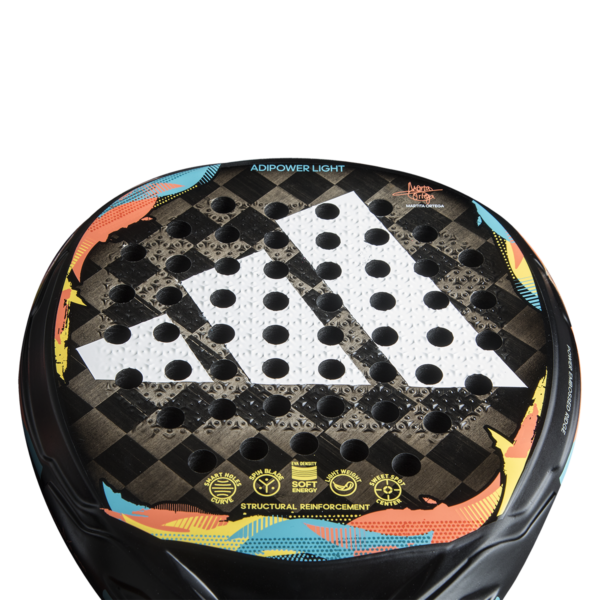 El peso de una pala es siempre un factor a tener en cuenta. Ahorrar algunos gramos puede ser un factor determinante para la comodidad en el manejo y por ello llega la ADIPOWER LIGHT 3.2. La pareja que hacen la goma EVA SOFT ENERGY en el interior y el CARBONO ALUMINIZADO 24K en el exterior, es idónea por su combinación de potencia y confort. Y la experiencia en el golpeo es inmejorable. La capacidad de generar un golpe potente se ve mejorada por la tecnología DUAL EXOSKELETON y su refuerzo en el marco de la pala con nervios de fibra de carbono. El SPIN BLADE en su formato MOLD, incrustado en el molde de la pala, supone un avance en la creación de efectos. Manejabilidad, potencia y ligereza son una elección inteligente. Por eso, es la que ha tomado Marta Ortega para competir.