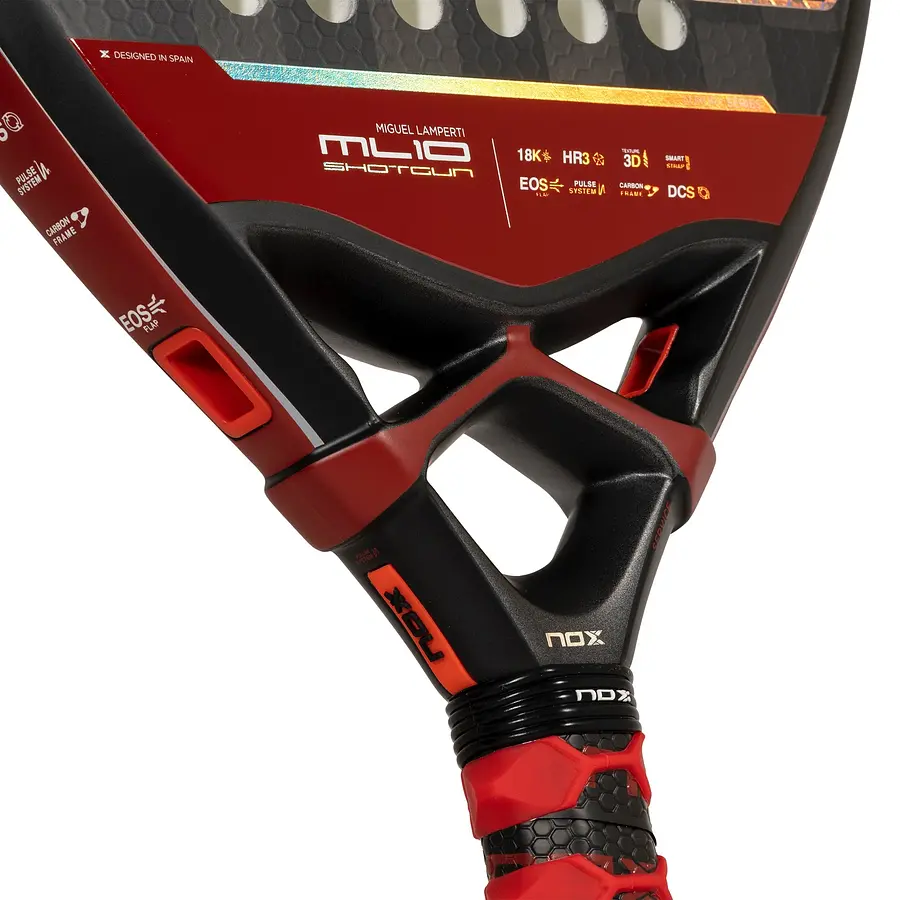 La nueva Shotgun mantiene la combinación de materiales de sus predecesoras, la fibra de carbono 18K y la goma clásica de NOX HR3, la preferida de Miguel Lamperti. Un tacto intermedio y muy familiar para todos aquellos jugadores seguidores de nuestras palas.