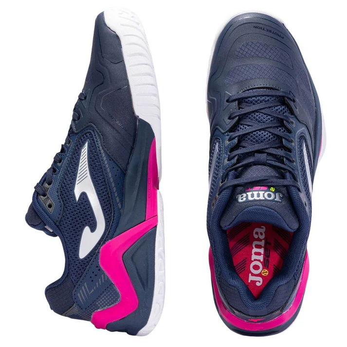 Zapatilla Joma T.Set Lady 2303 de tenis/pádel para mujer. No te pierdas el nuevo modelo mejorado de la zapatilla SET, con una nueva mediasuela que aumenta aún más sus prestaciones en estabilidad, amortiguación y protección. Están indicadas para jugadoras de peso medio/alto y ahora te permitirán mayor frecuencia de entrenamiento. Upper confeccionado con distintos tipos de materiales. En la puntera, lleva tejido ripstop súper resistente a los desgarros. Para ajustar y proteger los dedos de los pies, lleva sintético insertado sin costuras con el sistema JOMA SPORTECH. El resto de la Zapatilla Joma T.Set Lady 2303 combina textil transpirable con perforaciones VTS, que permiten la entrada y salida de aire para alcanzar una correcta ventilación del sudor. Las piezas de sintético de mayor densidad dan firmeza al corte. En este caso, también llevan perforaciones VTS. La cordonera y la lengüeta ligera optimizan el ajuste a la horma del pie. La mediasuela completamente renovada revoluciona sus características técnicas. Está realizada con el sistema de doble densidad FULL DUAL PULSOR: el phylon de mayor densidad en la zona brinda estabilidad, y en la parte inferior se incluye un phylon menos denso para proporcionar una excelente amortiguación e impulso. Incorpora además STABILIS SYSTEM, una pieza que estabiliza la pisada y evita giros inadecuados. La suela está fabricada con caucho DURABILITY de alta resistencia y durabilidad.